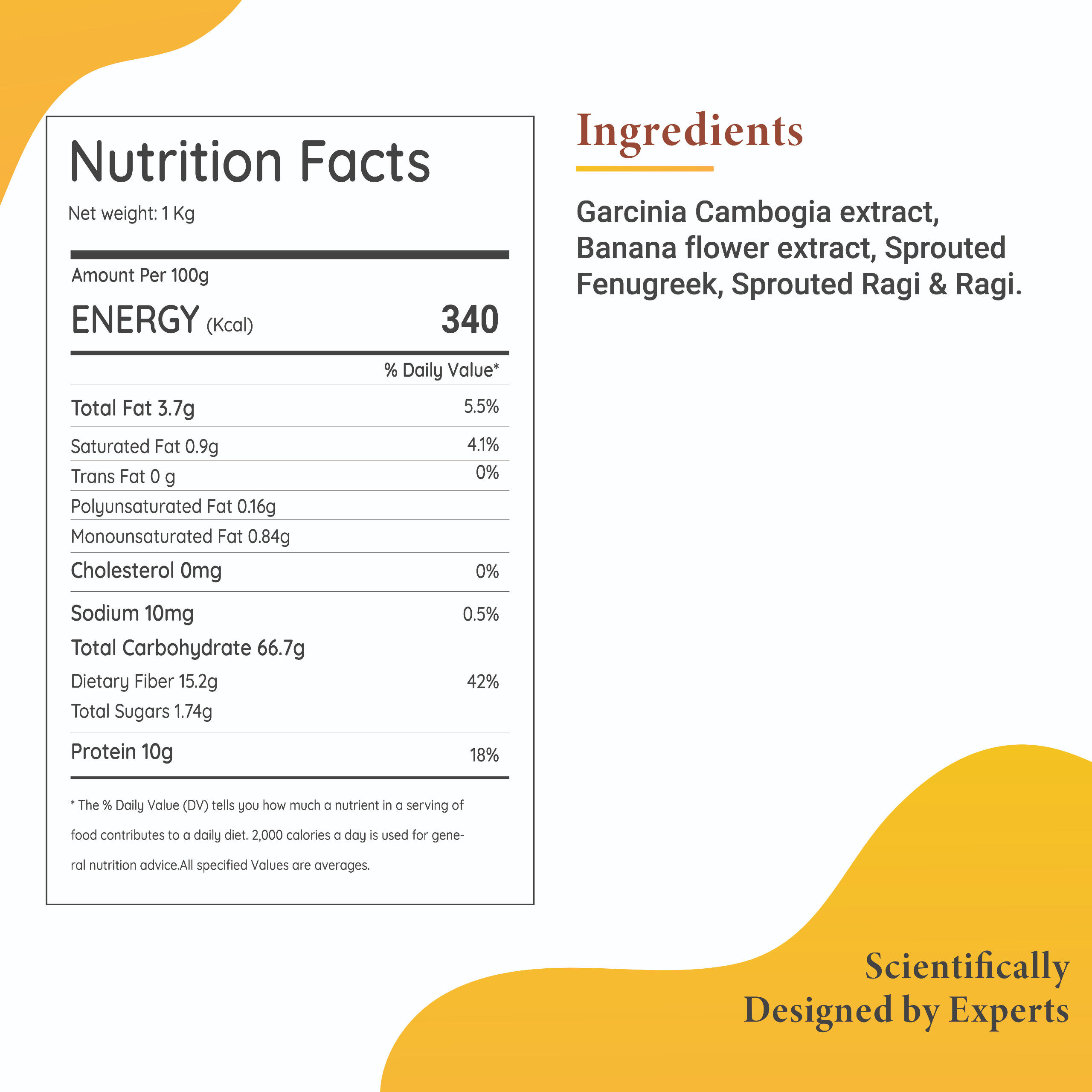 Get Fit Atta is a Scientifically crafted premix, paired with nutraceutical extract of Banana flower & Garcinia Cambogia and with the combination of sprouted Ragi & sprouted Fenugreek